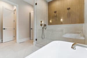 Modern bathroom with walk in shower and bathtub at 11522 River Beauty Loop